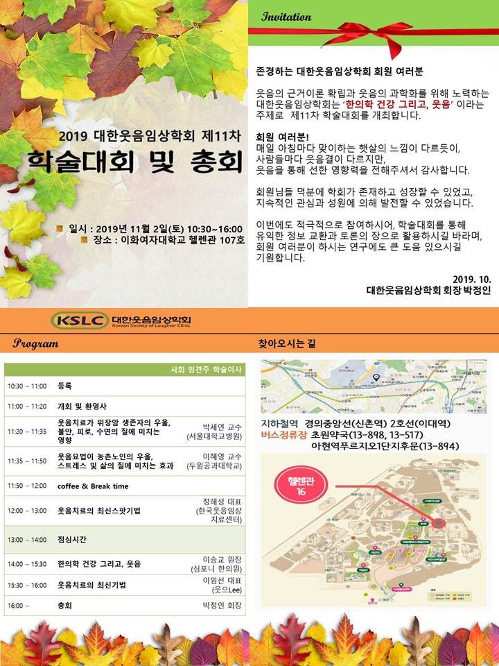2019 대한웃음임상학회 제11차 학술대회 및 총회