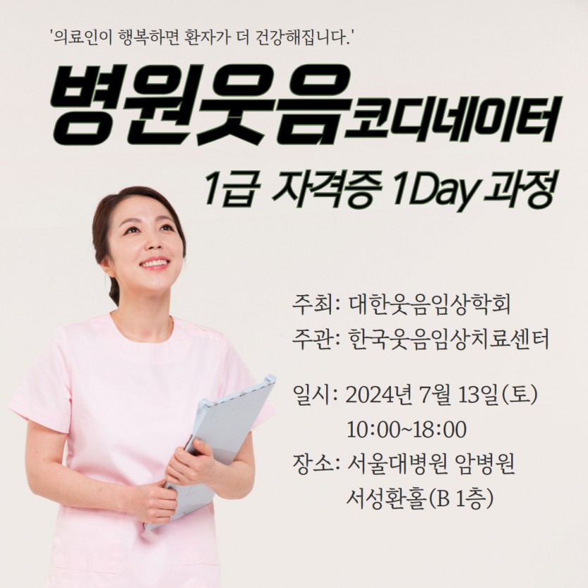07월 13일(토) 병원웃음치료[병원웃음코디] 1급 자격증 1DAY 취득과정